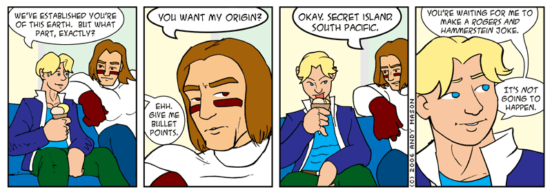 Did I ever mention how relieved I was that I switched to colour (way back when)? Really, I am. It's a bit (lot) of extra work, but it always makes it easier to identify the characters, and things just look better. Friday's comic looks fantastic. Well, I'm biased. But still.
