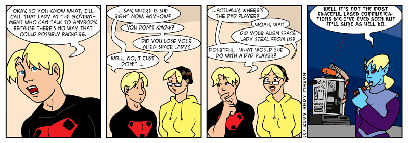 Hmm, I don't have much to say about this one. Except maybe that the first panel is a little clumsy. It feels like Manny should be saying more, or less annoyed or something. Oh well.