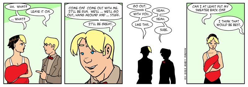 And I figured, what the hell, it's not like the big proper comics never hand-waved a continuity problem by assuming events happen between panels. So. Handy-wavy, timey-wimey. There.